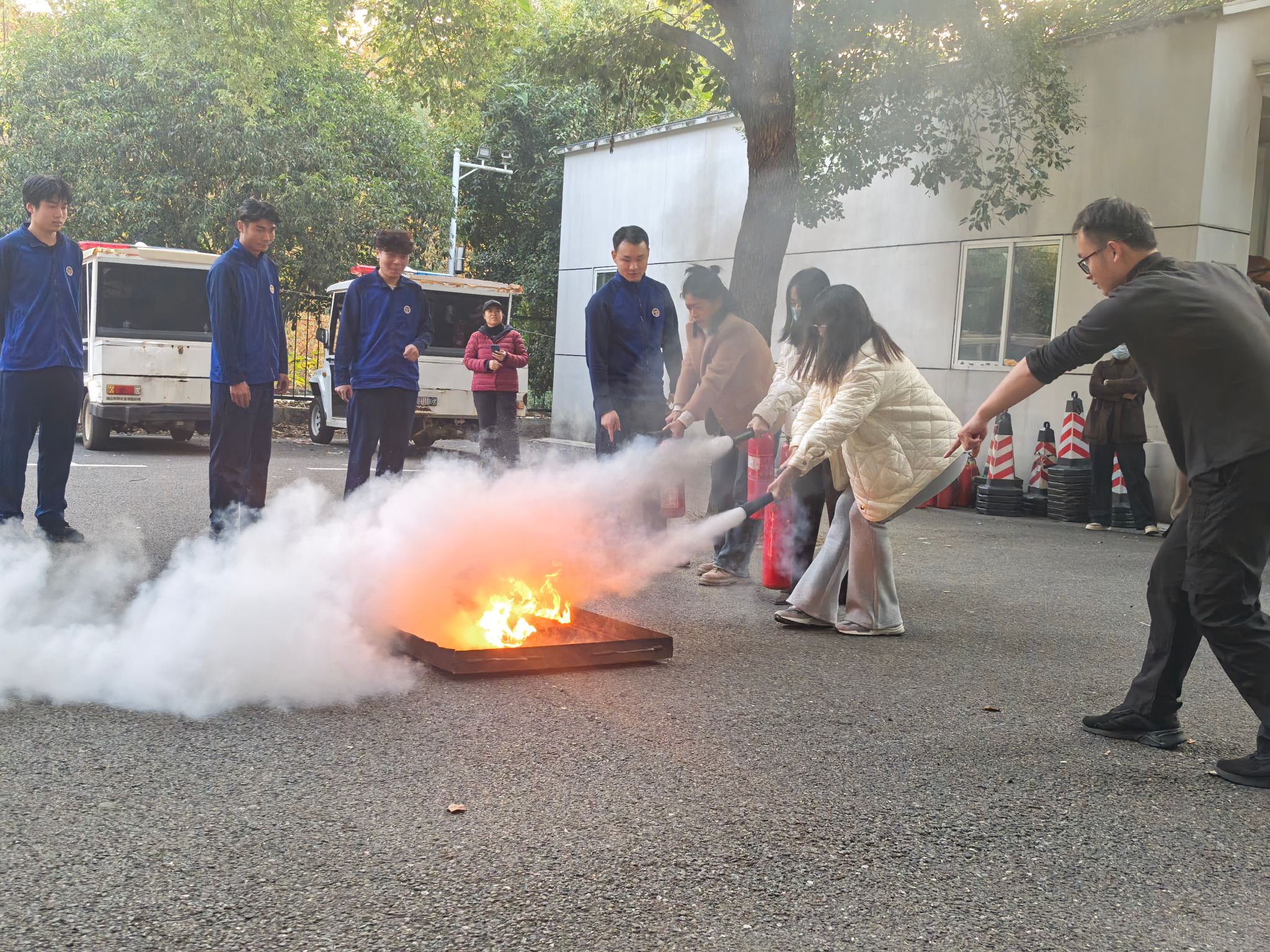 为响应学校11月消防宣传月“全民消防、生命至上——安全用火用电”主题号召,落实消防安全技能提升要求,11月21日下午,财资部在建安部统筹指导下,组织职工开展灭火器与防烟面罩实操培训活动,财资部在岗全员参与,切实筑牢校园安全防线。